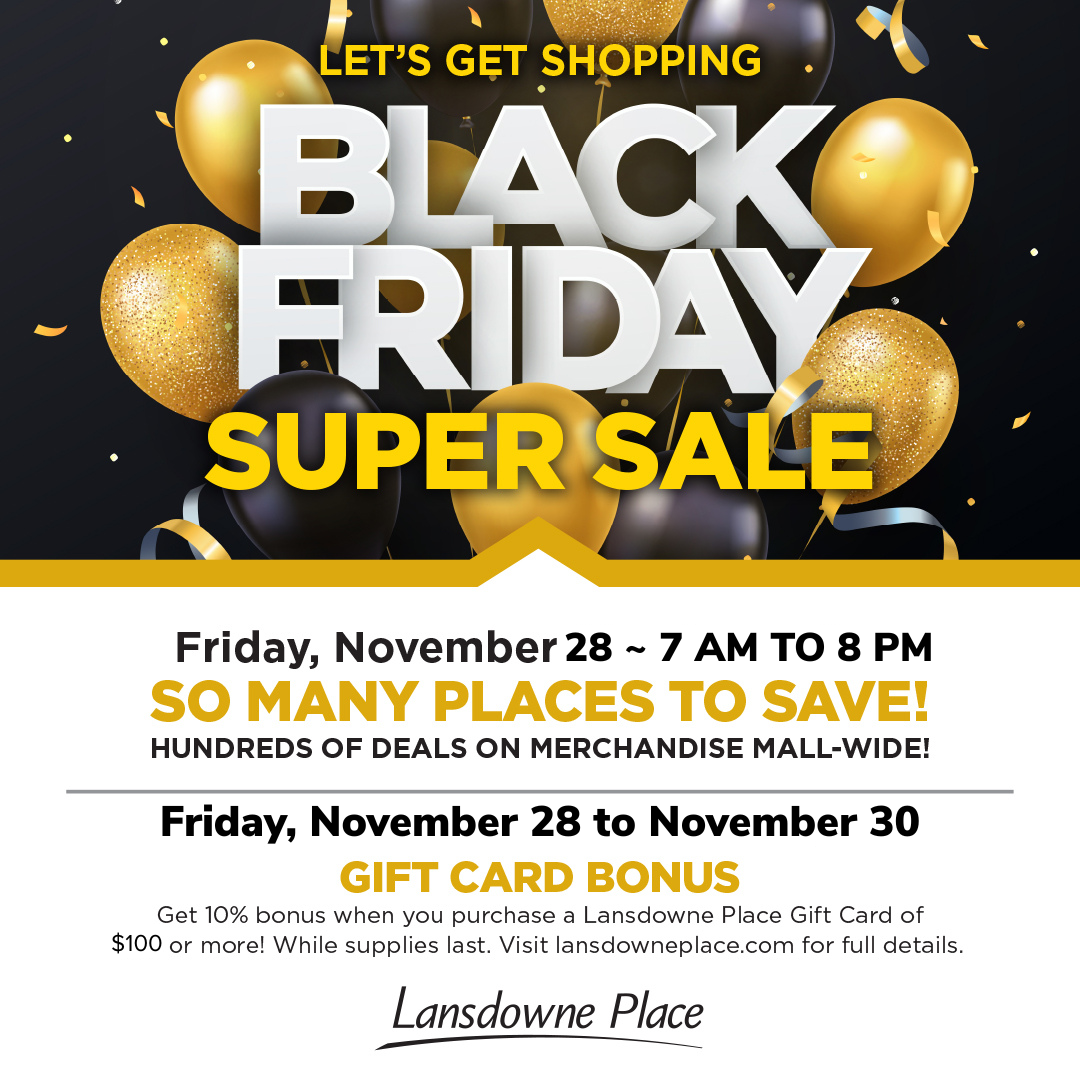 Join us for Black Friday sales on Friday, November 28th starting at 7 am.